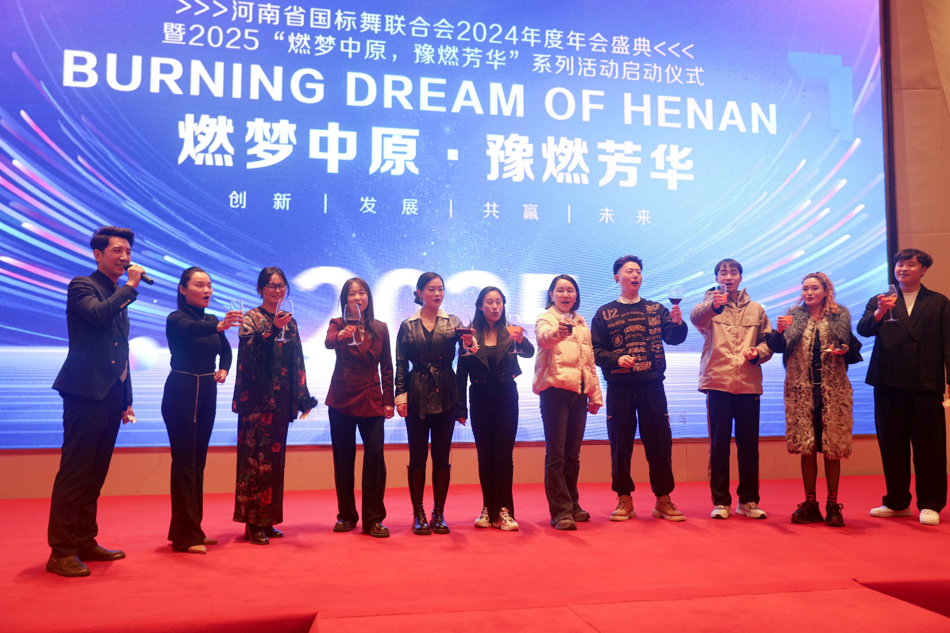 2025年2月14日,中国农历蛇年,河南省国标舞联合会年度盛典在热烈的氛围中圆满落幕。此次年会不仅是对过去一年工作的总结,更是对未来发展的展望。会上同时进行了2025“燃梦中原,豫燃芳华”系列活动启动仪式,为2025年的协会工作开启新的篇章。